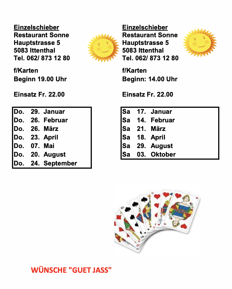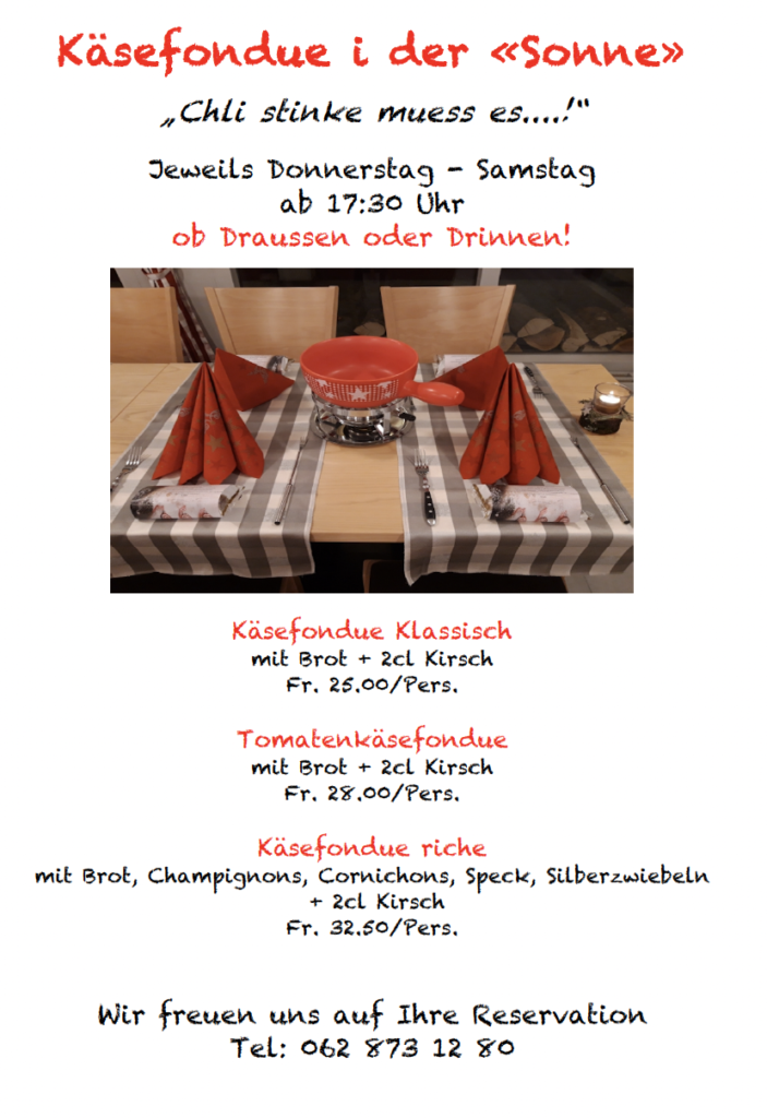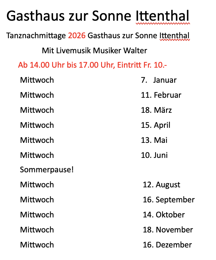 Ihr heimisches Gasthaus zur Sonne in Ittenthal. Wir freuen uns, Sie bald im Gasthaus zur Sonne begrüssen zu dürfen; ob im kleinen Rahmen, oder mit einer grösseren Gesellschaft.